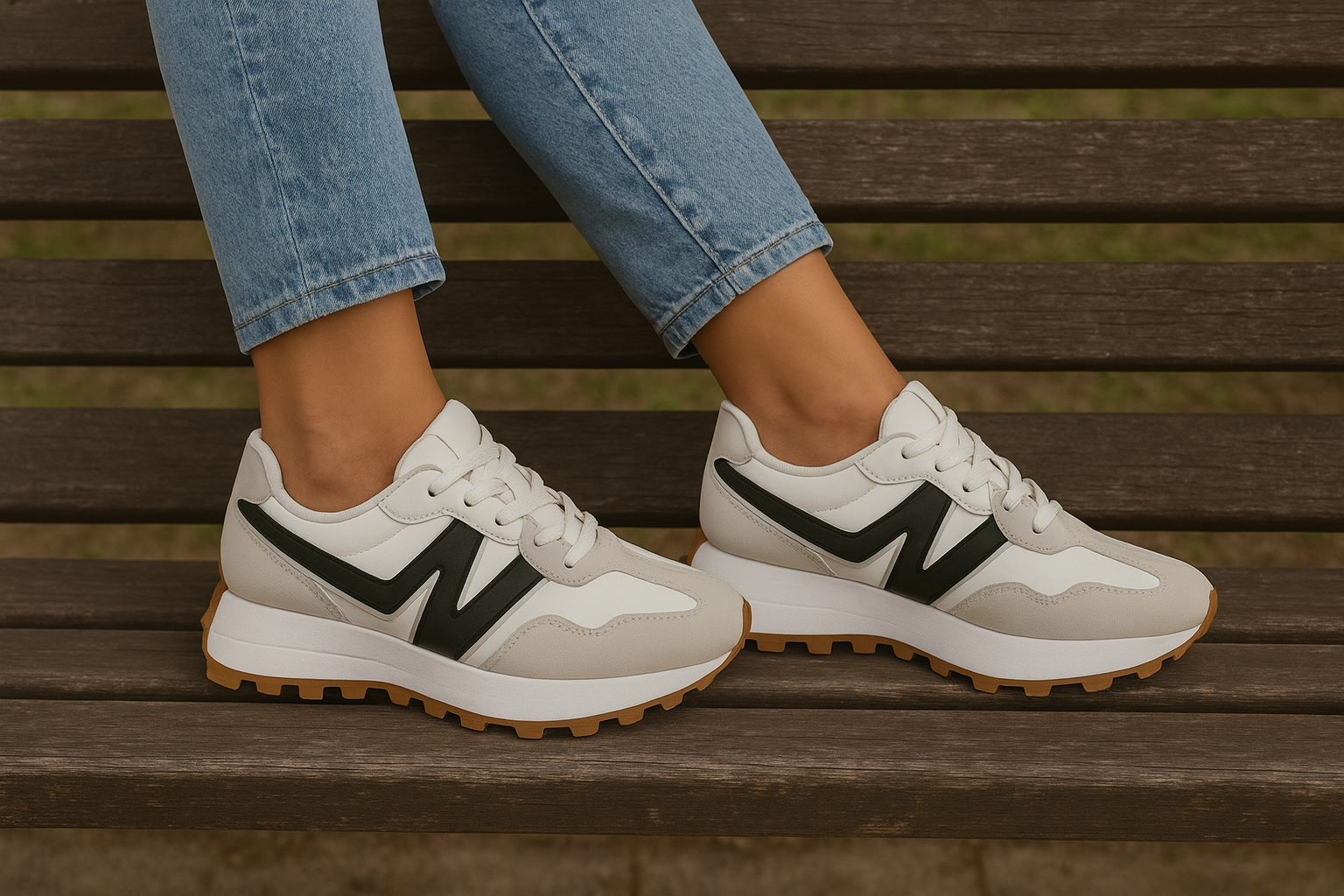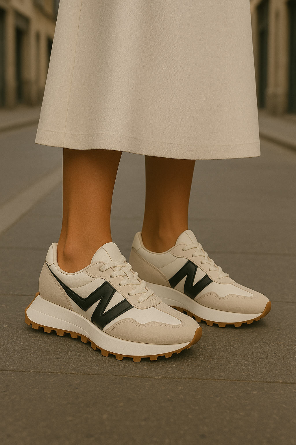 Ανανεώστε το στυλ σας με αυτά τα μοντέρνα sneakers! Σε λευκό και γκρι χρώμα με εντυπωσιακή μαύρη λεπτομέρεια στο πλάι, προσφέρουν άνεση και κομψότητα σε κάθε σας βήμα. Η ψηλή, αντικραδασμική σόλα με καφέ πάτο χαρίζει σταθερότητα και σπορ διάθεση, ενώ το ελαφρύ τους υλικό τα καθιστά ιδανικά για καθημερινή χρήση.